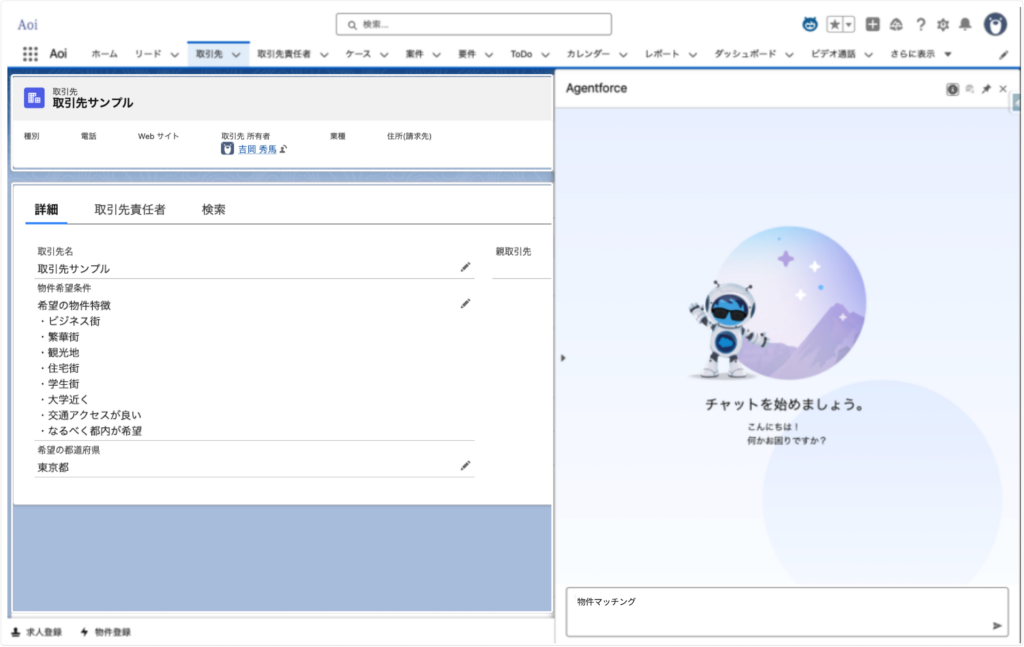 最後は、Agentforceを起動し、「物件マッチング」と入力するだけです。